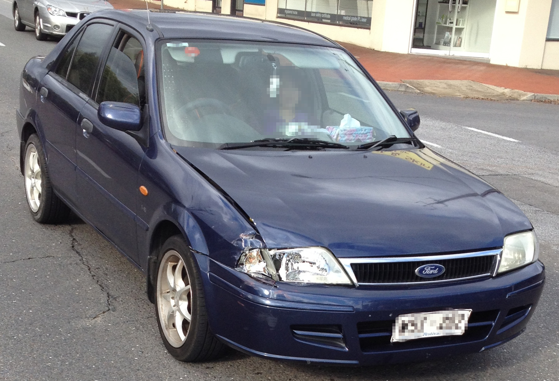额...不是很严重的吧...就是车右前方那块有问题而已...如图如图 必须是那个拿P牌的小屁孩的责任呀,哈,他在T路口没give way就直接冲出来了 |