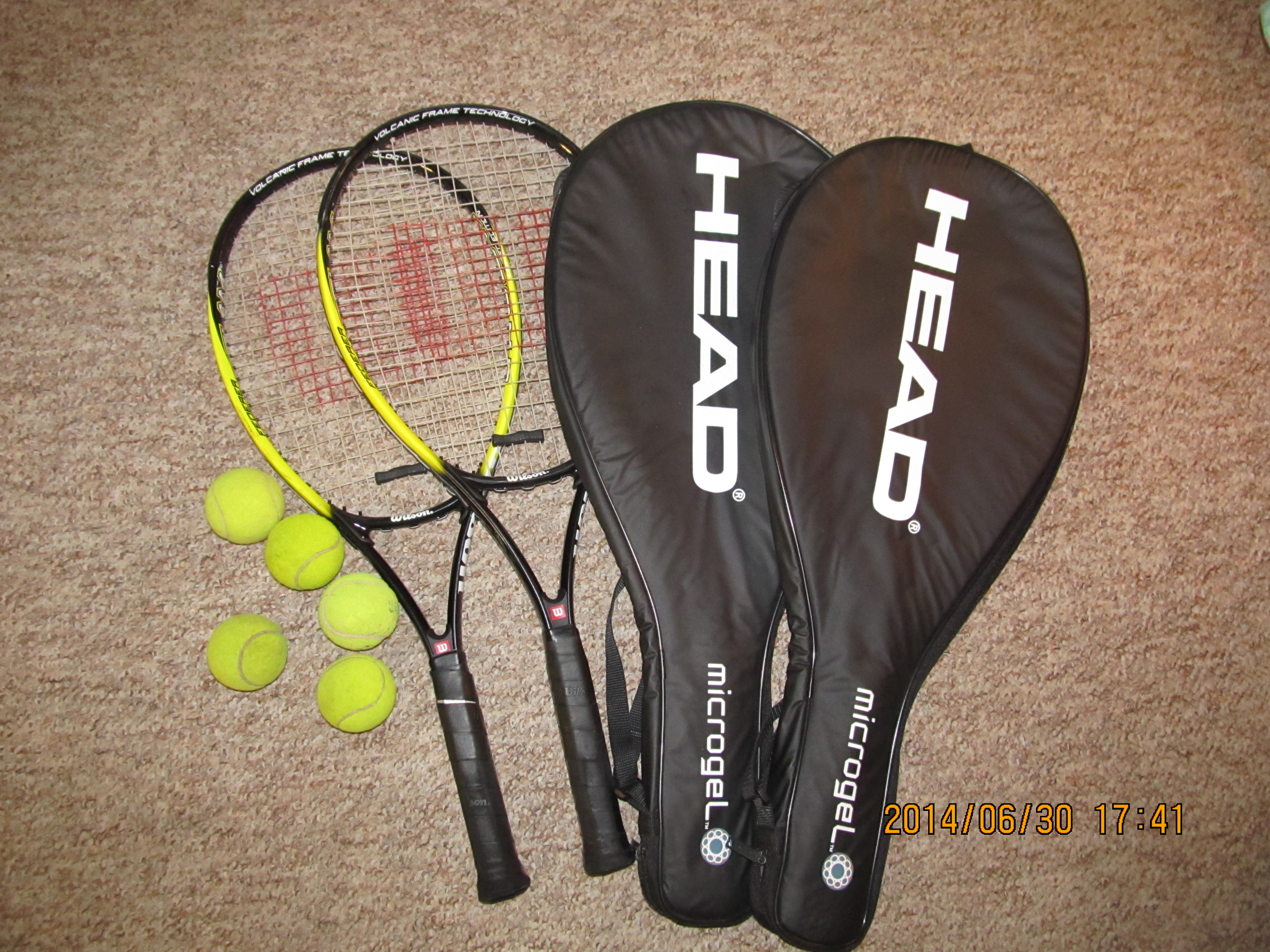 近新2个wilson网球拍+2个球拍套+5个网球只卖55元
