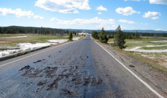 美国西部的黄石国家公园的“地下超级火山”最近不断释放巨大热量 美国西部的黄石国家公园的“地下超级火山”最近不断释放巨大热量,加之当地夏季气候炎热,造成一段长约5公里的柏油马路开始“融化” ...