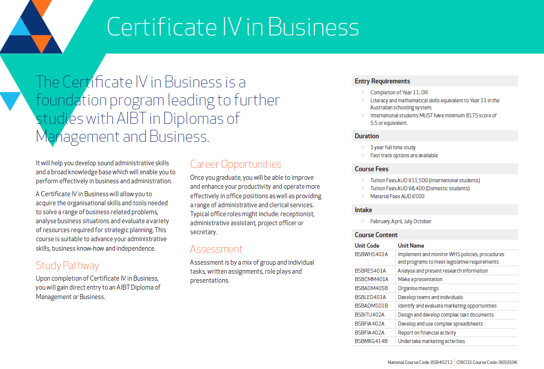 2014-15学年课程列表(点击打开) Certificate IV in Busines 商业四级证书 Diploma of Business (Human Resources) 商科文凭(人力资源方向) Diploma of Management 管理文凭 Adv ...