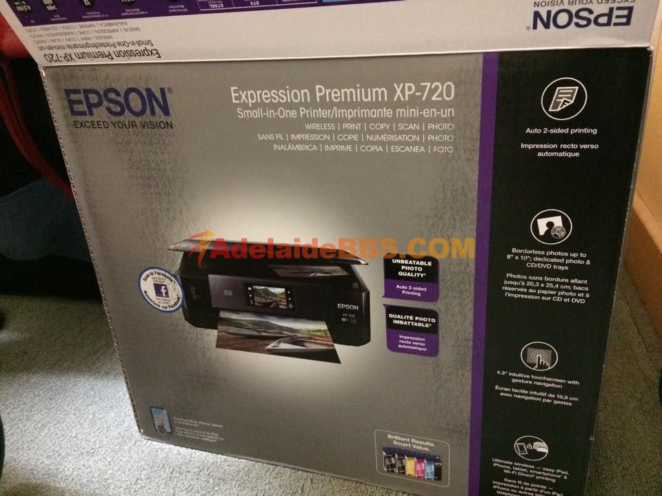 本帖最后由 hjia1226 于 25-8-2015 06:16 PM 编辑 出售爱普生 Epson XP-720原价249刀,售价215刀 1年保质期至29/03/2016 无线连接至手机、电脑、平板 支持微软 Windows XP 以上和苹果 Mac OS X 10.6.8 以上 ...