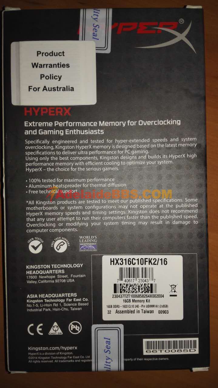 本帖最后由 jeffzhang 于 27-9-2015 11:07 PM 编辑 16G Kit 1600 (8Gx2) HyperX Fury 内存条,未拆封的。价格 $120. MSY卖135. 有兴趣的联系我。电话: 0431577882