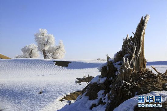 ”死亡之海“塔克拉玛干沙漠频现雾凇景观 1月14日,“死亡之海”塔克拉玛干沙漠中,胡杨身披雪白晶莹的雾凇。从2015年年底以来,有“死亡之海”之称的新疆塔克拉玛干沙漠频现雾凇奇观,黄沙映着晶莹的 ...