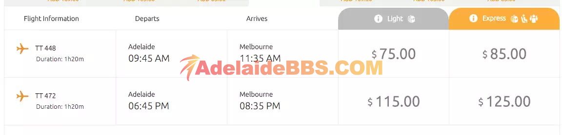 50刀转一张3月23日上午9点45阿德莱德-墨尔本机票(虎航TT448) Easter期间要从阿德去墨尔本的朋友们不要错过了 Tel:0487964002