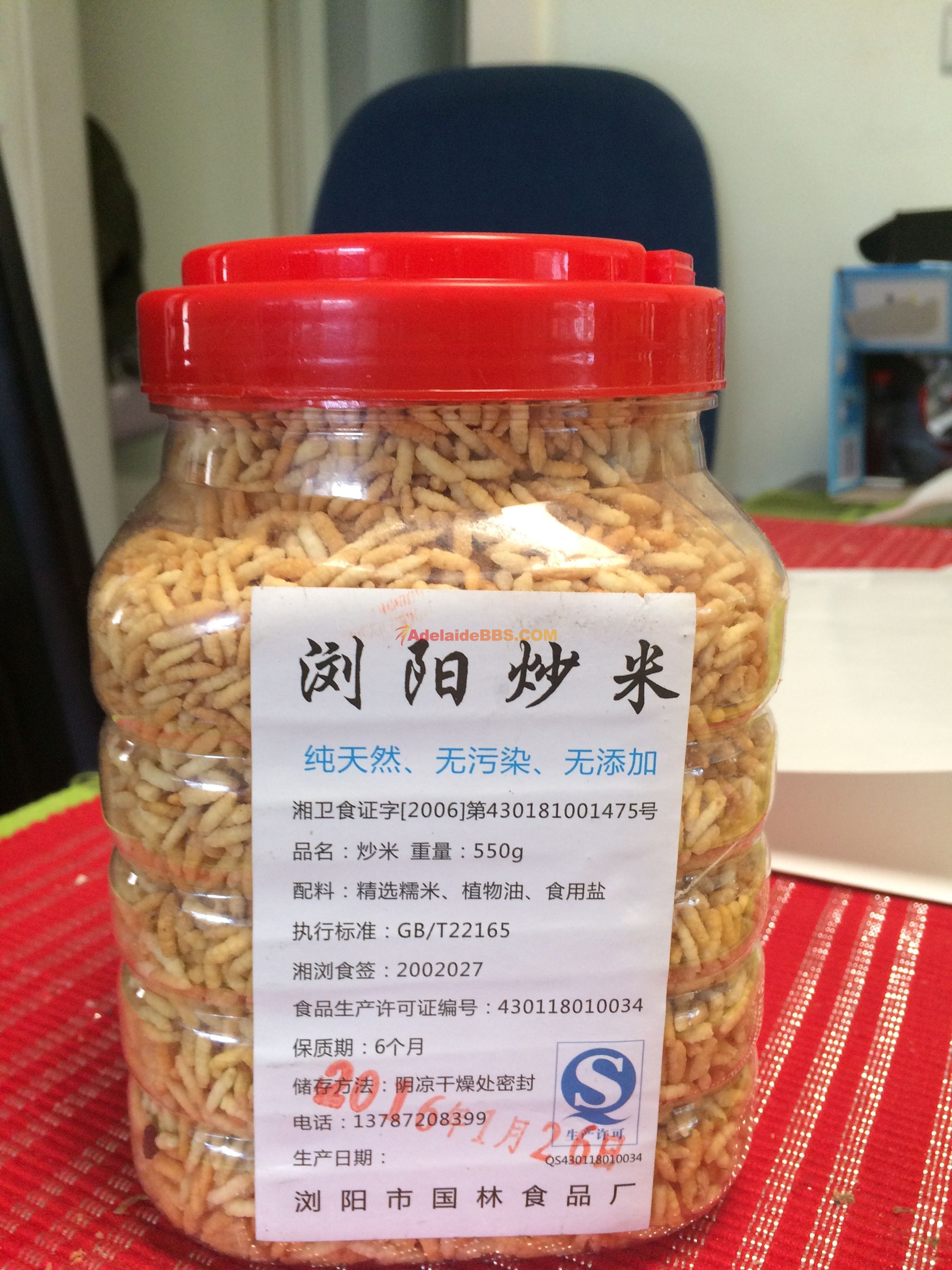 本帖最后由 wxh8818 于 2-4-2016 11:12 AM 编辑 如果你是湖南人,应该知道浏阳炒米吧?香香的炒米,配茶吃好吃得停不了口。刚刚新鲜从家里寄来许多,吃不了,转给想吃的朋友吧。 浏乡牌泰国炒米,有鸡翅味 ...