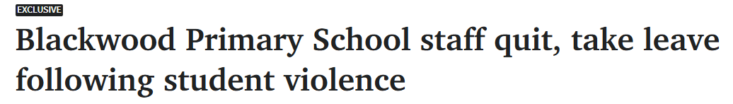 据称,Blackwood Primary School四名教职工因一名踢打、击打并向师生吐口水的学生而被迫辞职或请假。