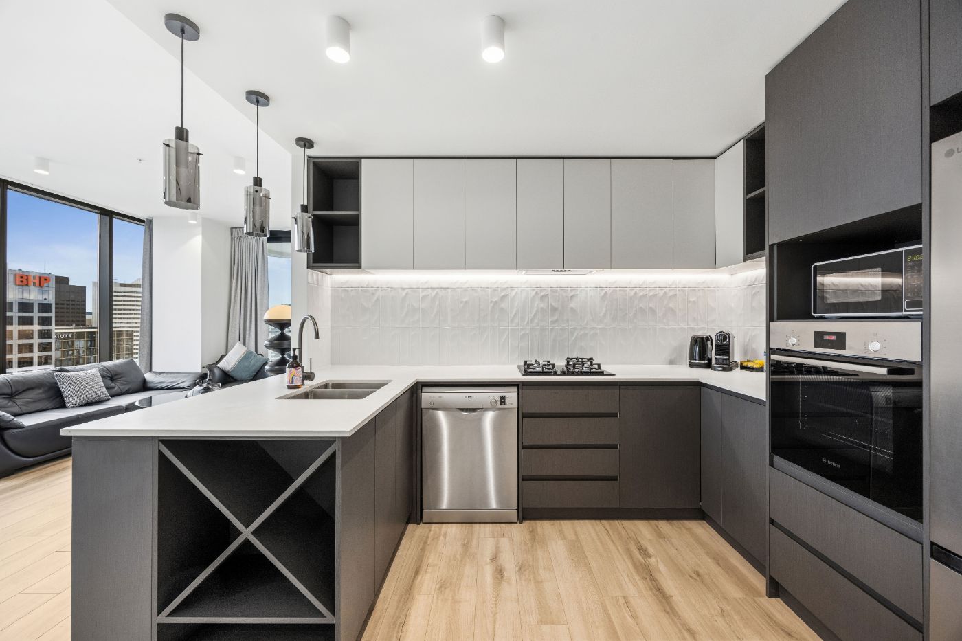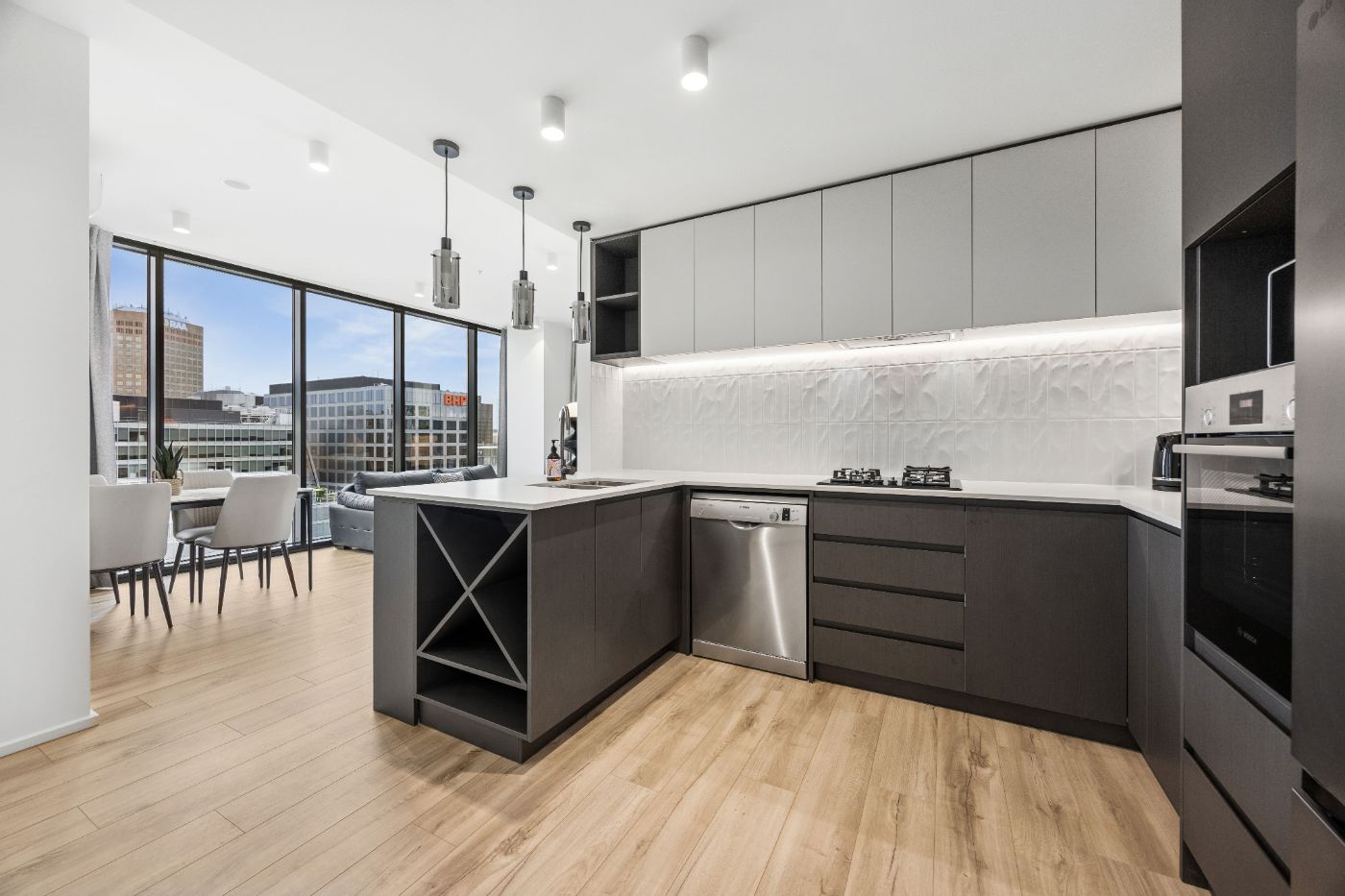 • 现代厨房配备高端电器,包括洗碗机、燃气灶及嵌入式烤箱。