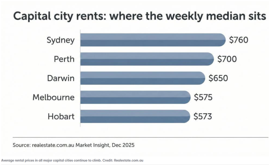 REA集团高级经济学家Anne Flaherty表示,压力并未缓解。"去年12月所有市场的租金都处于历史高位,预计2026年将再创新高。"她说。