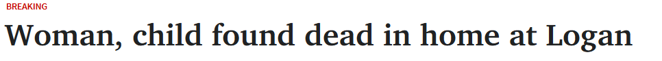 据《couriermail》3月12日报道,今早,昆州警方在Logan一处住宅内发现一名妇女和一名儿童的遗体。