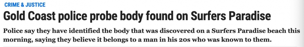 今天早上,冲浪者天堂海滩发现一具男尸!布里斯班公园还有一具女尸正在调查中。 警方已在公园内宣布犯罪现场,继续调查导致女子死亡的原因。 警方表示,法医调查人员和病理学家都在现场,并将进行验尸以确定 ...