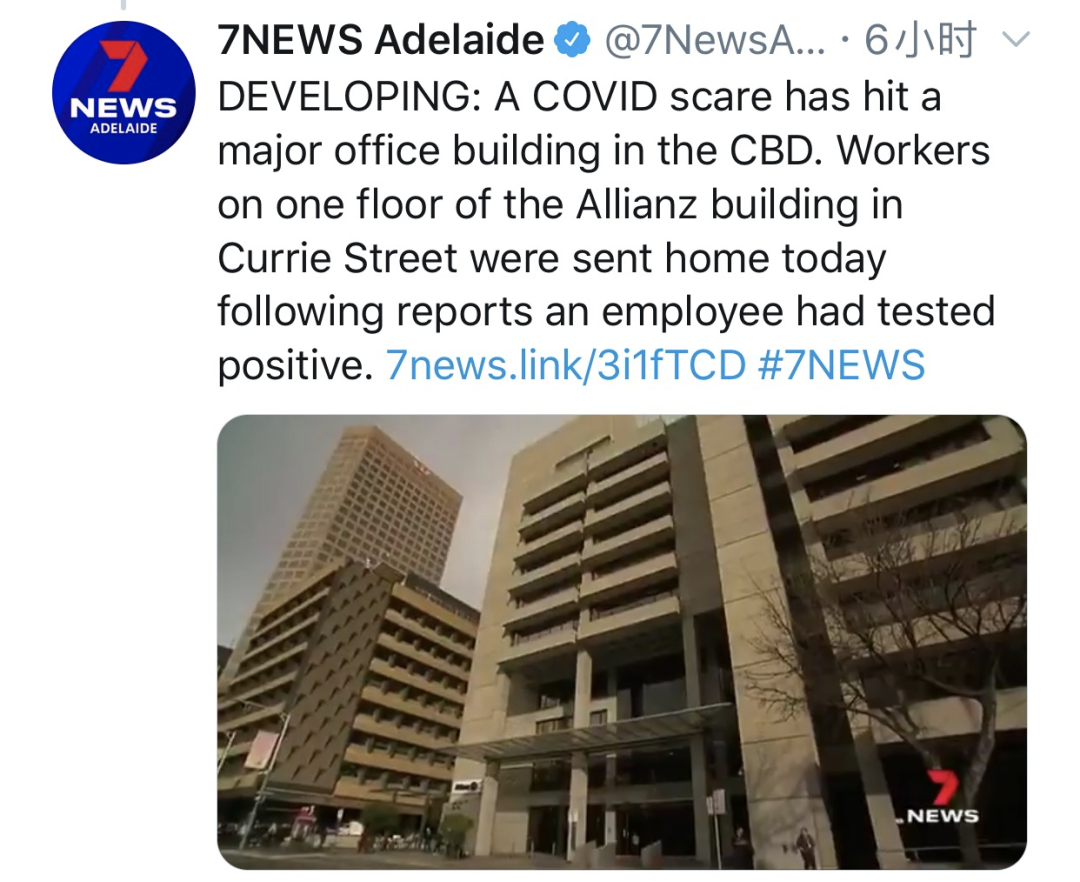 据7 news报道,由于出现疑似COVID-19病例,周一(8月3日),位于Currie Street的Allianz大楼一层的工作人员被告知撤离,一名员工在等待COVID-19检测结果。 该公司表示,此事尚未得到证实,这些措施是为了保护员工的 ...