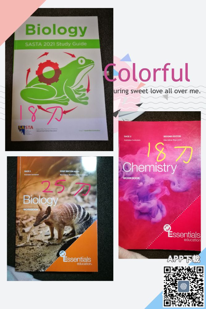 孩子高中毕业,整理出一些书籍(Year 11&12),都非常新,没有书写的痕迹(除了chemistry essential有部分书写)价格在图片上已标注,需要的家长朋友可以加微信或者电话联系0450421456。