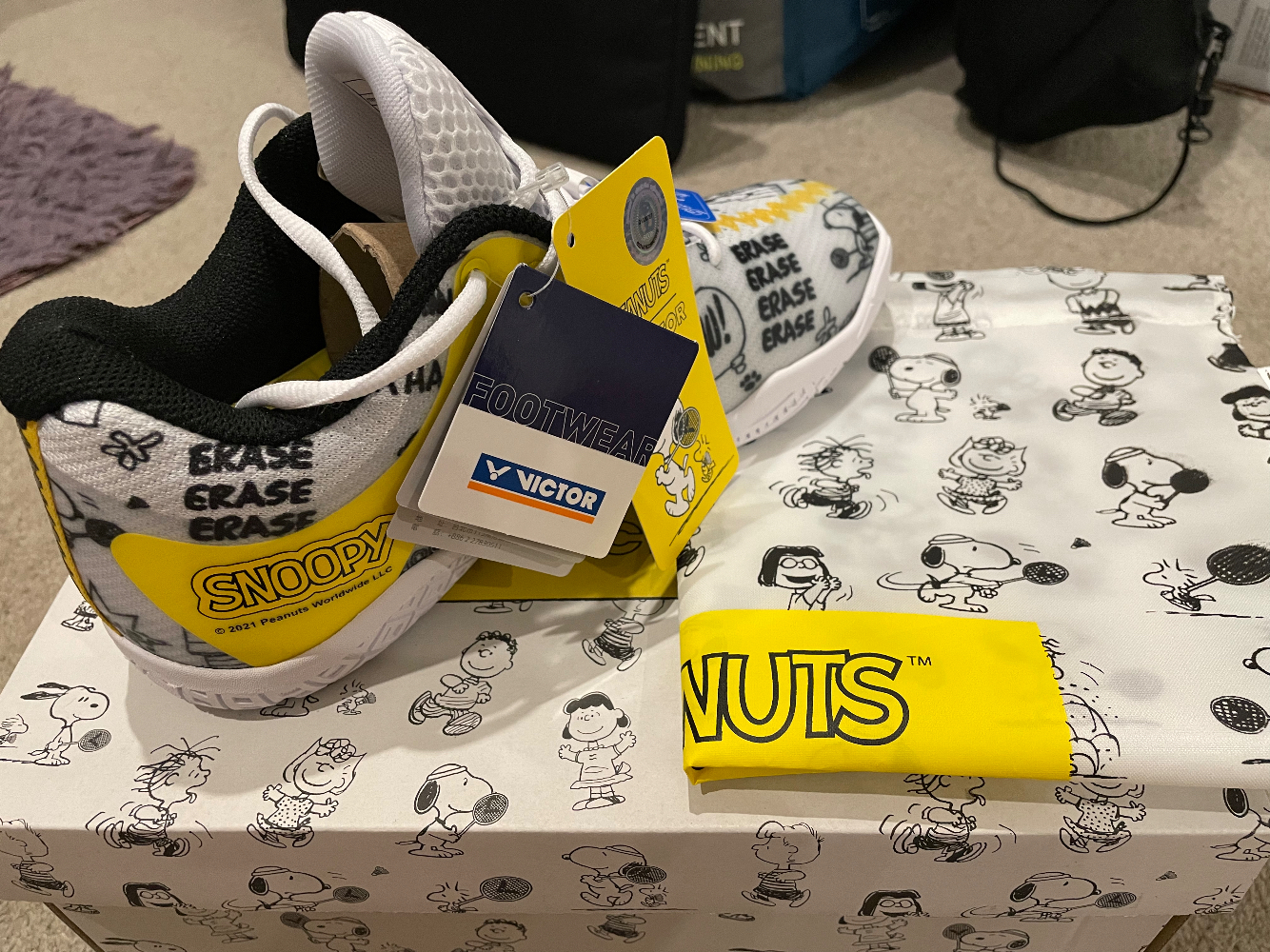 出Victor 羽毛球鞋 Victor X Peanuts - Snoopy Badminton Shoes (UNISEX) Limited edition 只試穿了一下 買小了 $150出