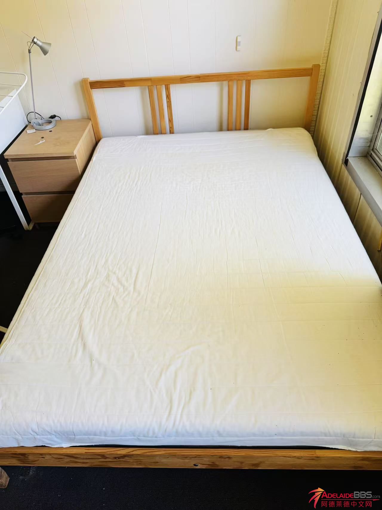 因搬家出售 需自取 木质床架 大概2m*1.45m 床架+床垫130刀 愿意来看的还有桌子,小床头柜什么的看着给(卖到24号晚,没人要就处理了)
