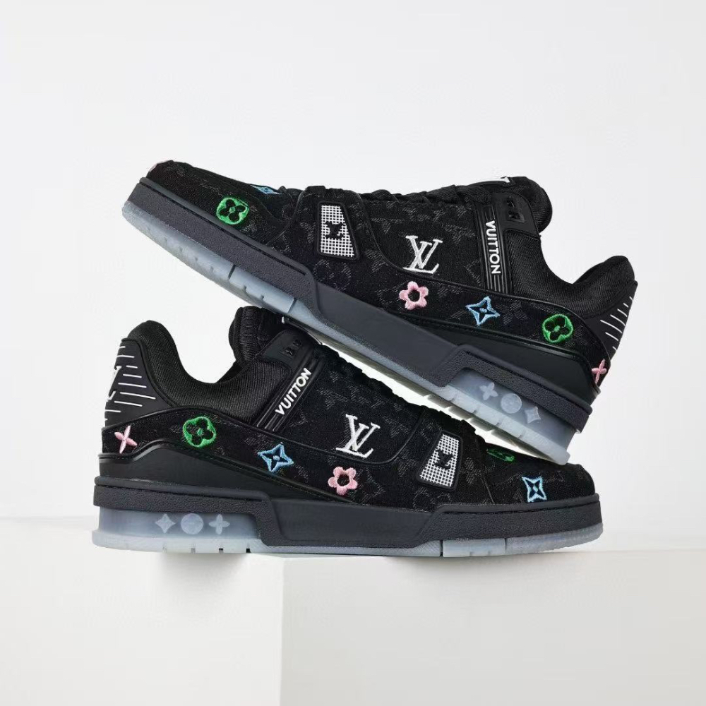 出二手 【全码齐全】大牌灵感潮鞋·限量转让 震撼来袭!极致“大牌”质感——牛仔蓝、酷黑与纯净白三色灵感款运动鞋,结合高级刺绣花卉与经典字母标识,让你走到哪儿都秒变潮流焦点。全码齐全,随你挑选,99成新, ...