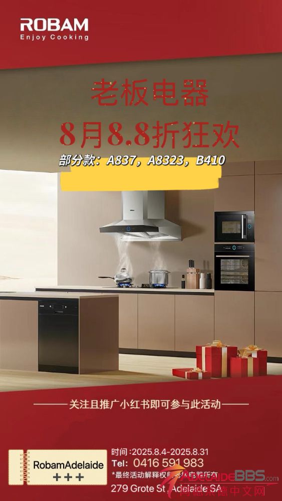 阿德莱德抽油烟机安装阿德莱德炉灶阿德莱德老板电器8月8.8折