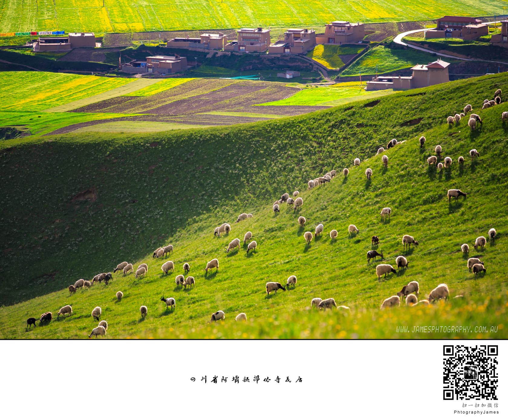 阿坝民居 日落下的郎依山的羊群