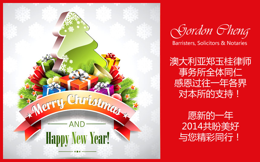 本帖最后由 郑玉桂律师 于 2013-12-18 11:00 编辑 澳大利亚郑玉桂律师事务所全体同仁感恩过往一年各界对本所的支持!愿新的一年2014共盼美好,与您精彩同行!