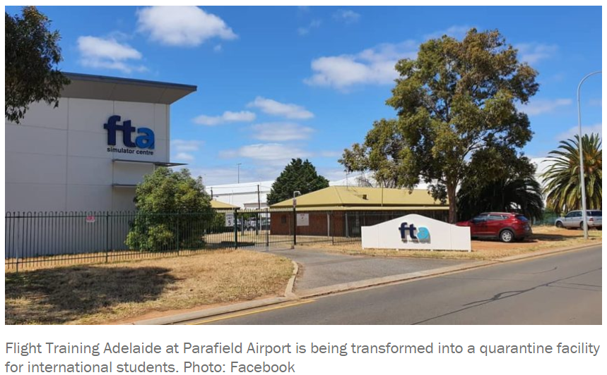 州政府于5月宣布Parafield机场飞行学校为其选定的隔离海外学生的地点,这是当时被称为全国首创的试验的一部分,旨在恢复一个因COVID-19引发的边境关闭而遭受重创的数十亿美元的产业。