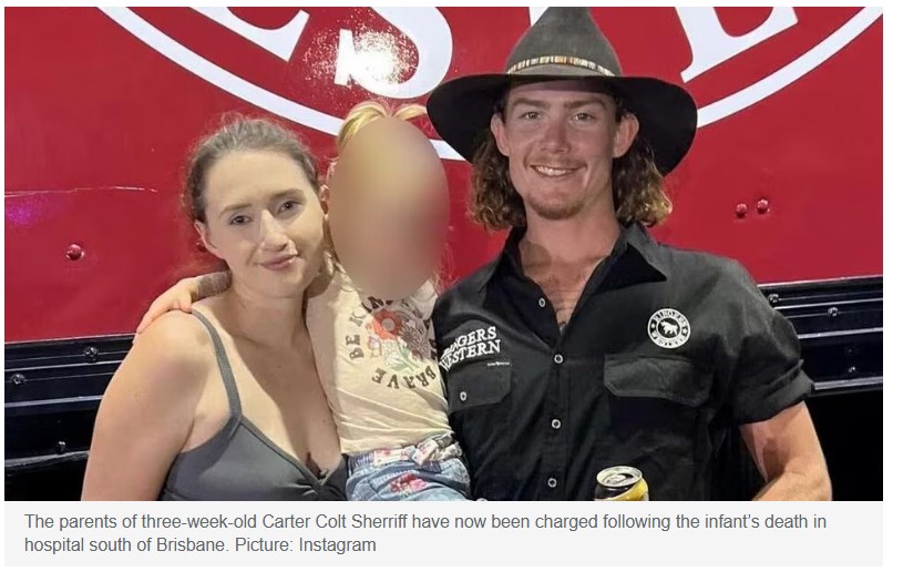 据《news》2月5日报道,2024年7月22日,一名出生仅三周的婴儿Carter Colt Sherriff在布里斯班南部一家医院重伤死亡,其父母均已被指控谋杀。