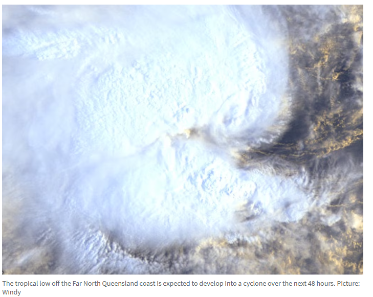 若该气旋生成,将根据西澳海岸附近的热带低压是否先行形成,被命名为Narelle或Owen。预计该系统将向西移动逼近海岸,可能于周五在Cooktown与Townsville之间登陆。