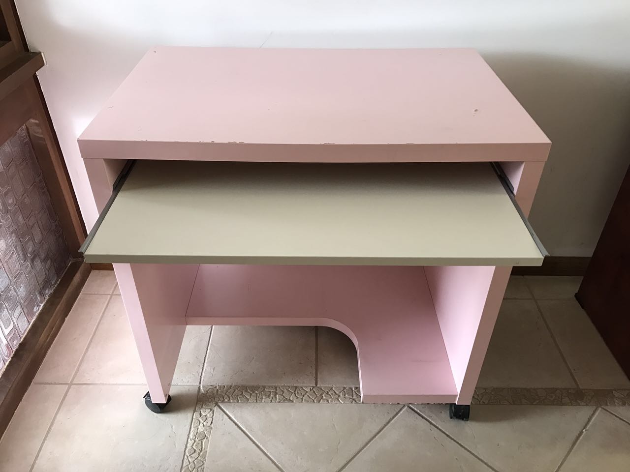 卖一个小书桌长76.5厘米高76.5厘米. 桌面有划痕.有四个滑轮可以推拉. $10自取.靠近西湖商场. 电话0425226285 (Angel)