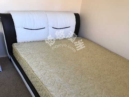 九成新高质量床垫+香槟色皮艺木架床架,超宽(1.2m)单人床,$180/套。