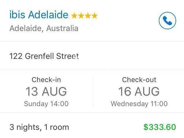 本人由于行程问题,无法入住原本预定的酒店特转让 IBIS阿德莱德酒店位于阿德莱德市中心,步行到Rundle Mall 主街 仅2分钟,步行至唐人街10分钟。地理位置巨好! 入住时间为2017.8.13 ,三个晚上到2016.8.16早check ...