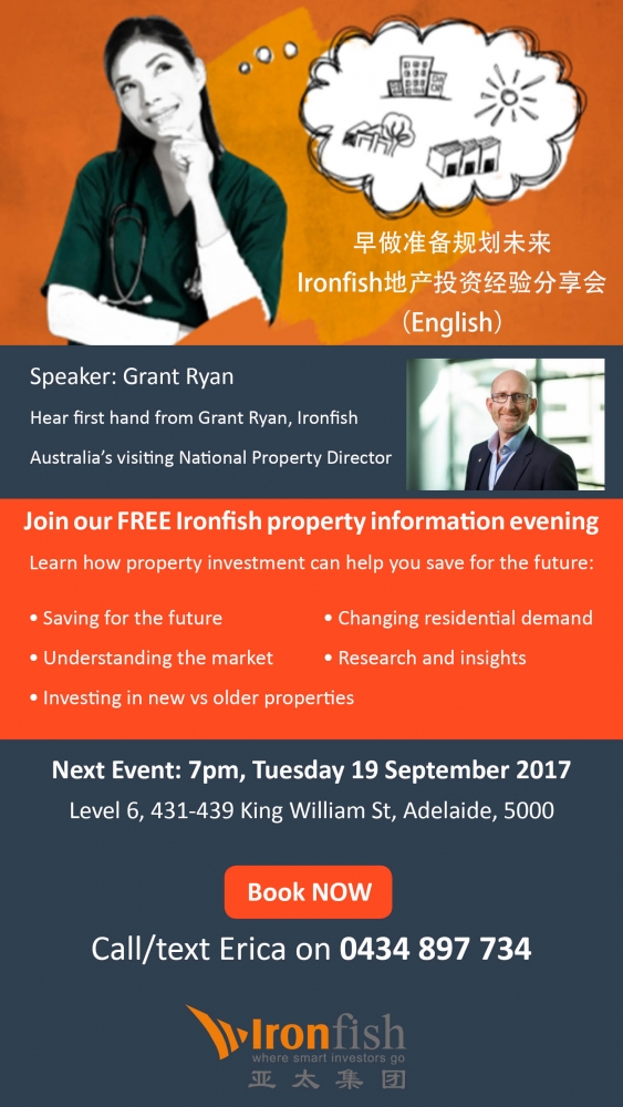 早做准备规划未来 Ironfish地产投资经验分享会 (English讲座) 主讲人: Grant RyanIronfish 亚太集团悉尼创始人之一,地产策略专家。 分享内容:为将来打算——如何通过房地产实现财务自由;了解房市 ...