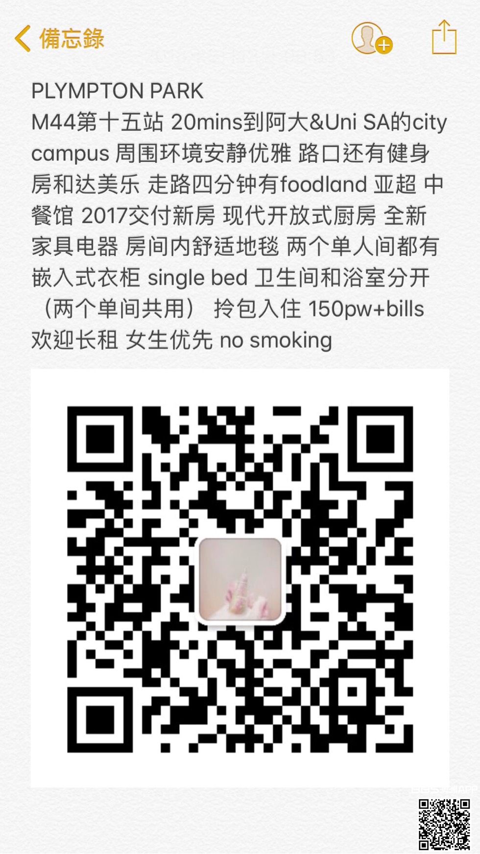 M44第十五站 20mins到阿大&Uni SA的city campus 周围环境安静优雅 路口还有健身房和达美乐 走路四分钟有foodland 亚超 中餐馆 2017交付新房 现代开放式厨房 全新家具电器 房间内舒适地毯 两个单人间都有嵌入式衣柜 ...