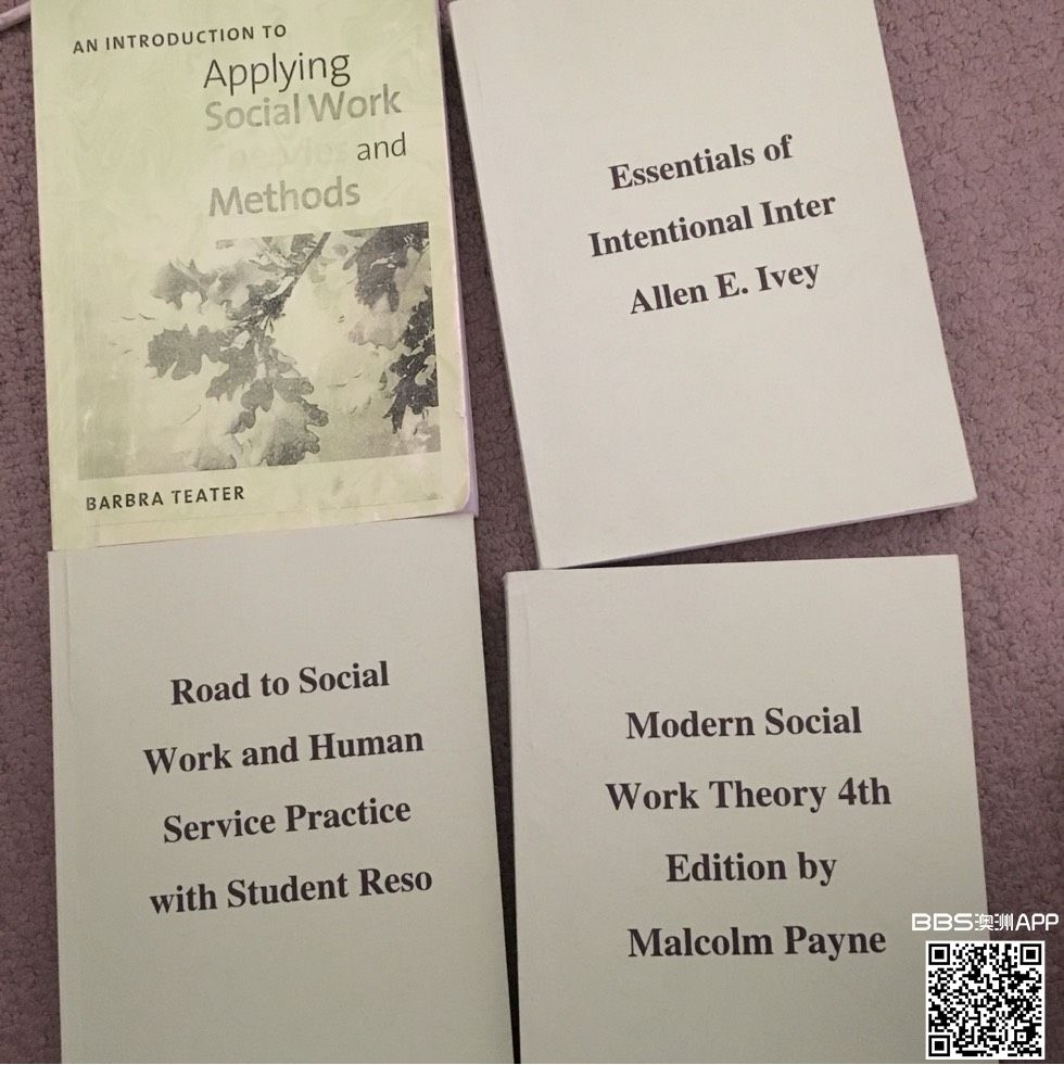 Social work的专业书,每本$8,写assignment很有用。 雅思真题语料库$2。 如果全部都take的话一共$30 联系方式:0426 959 118 或者微信:yaoyao180150