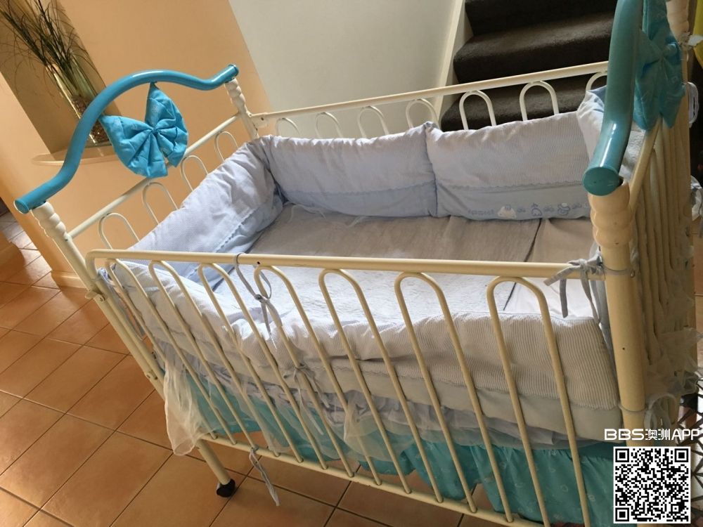 和新的一样,就用了几天,后来回国了,再回来的时候已经太小了。100刀,含床垫和四周的保护垫。 尺寸: 宽:700 长:1160 高:1140 联系电话: 0430 856 346 侧面和一个侧面是可以翻下来的。如图