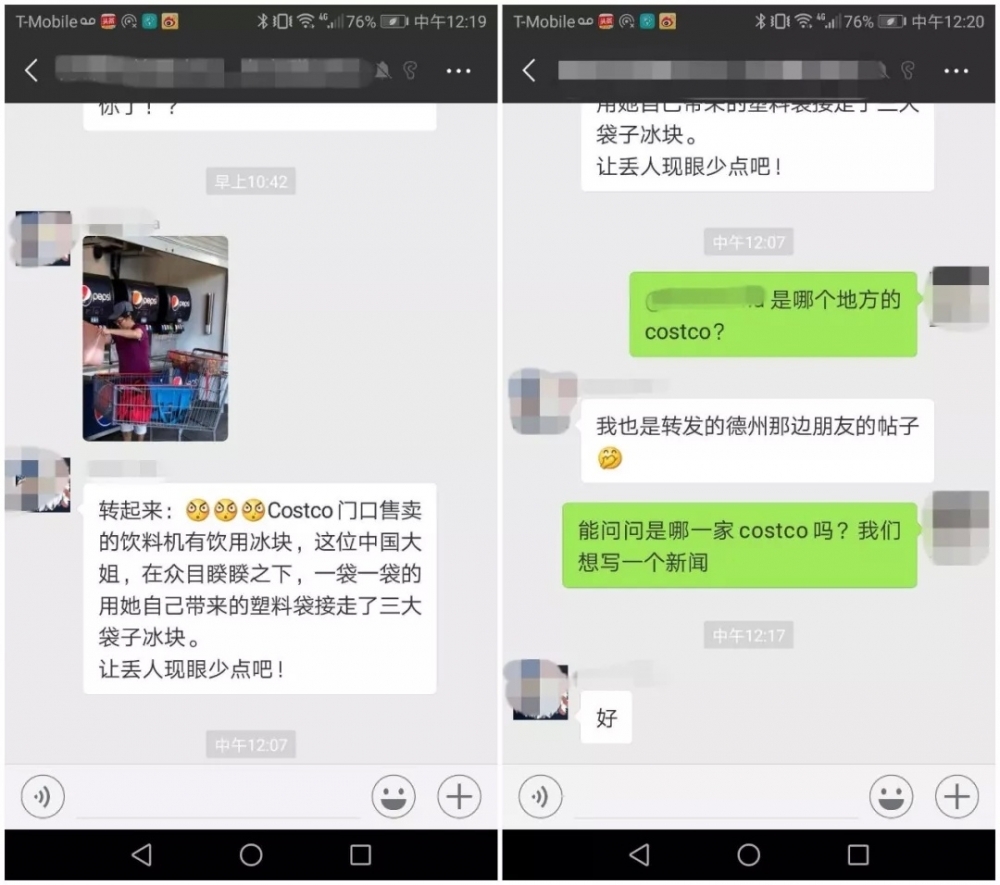 纽约华人资讯网 今天在朋友群里一张照片被转发,照片中一名华裔大妈在Costco外卖餐区的饮料机旁,正拿着一个红色的塑料袋装免费的饮用水冰块。中国大妈又丢人现眼了!