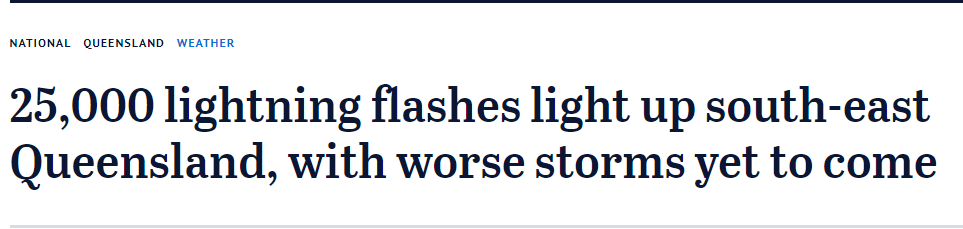 昨天,昆士兰东部地区经历了暴风雨的洗礼, 树木倒下,两厘米厚的冰雹落下,强风吹过, 还有超过25000道闪电划破天空, 让人惊吓连连。 他说:“昨天晚上在风暴最严重的时候,共有3500户停电,今天早上阳光 ...