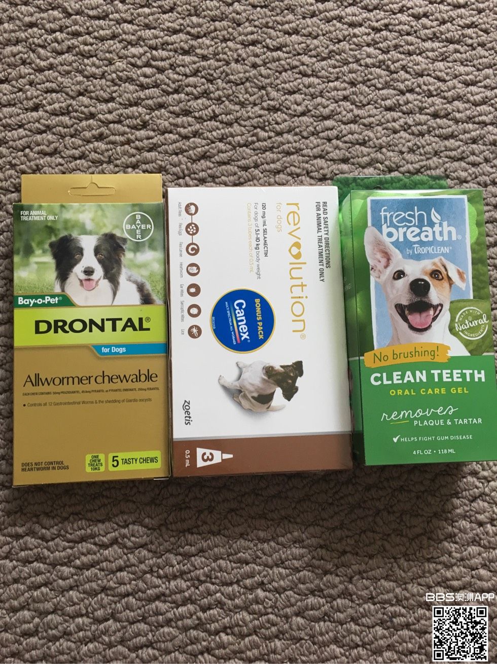 狗驱虫 体外体内 大宠爱 拜耳 买多了,便宜给需要的朋友。大宠爱5-10kg体外体内一体驱虫3支装,45澳币。拜耳牛肉粒,体内驱虫5粒装,55澳币。美国tropiclean狗牙齿清洁木糖醇滴液。只需要定时涂在狗的牙齿上,省去刷 ...