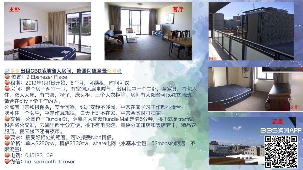 🌟出租CBD落地窗大房间,俯瞰阿德全景🌟