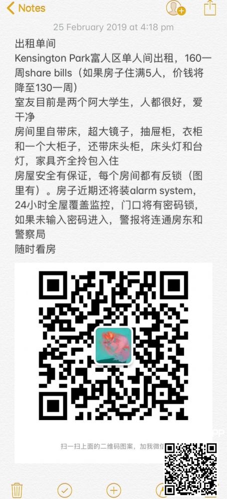 出租单间Kensington Park富人区单人间出租,160一周share bills(如果房子住满5人,价钱将降至130一周)室友目前是两个阿大学生,人都很好,爱干净房间里自带床,超大镜子,抽屉柜,衣柜和一个大柜子,还带床头柜, ...