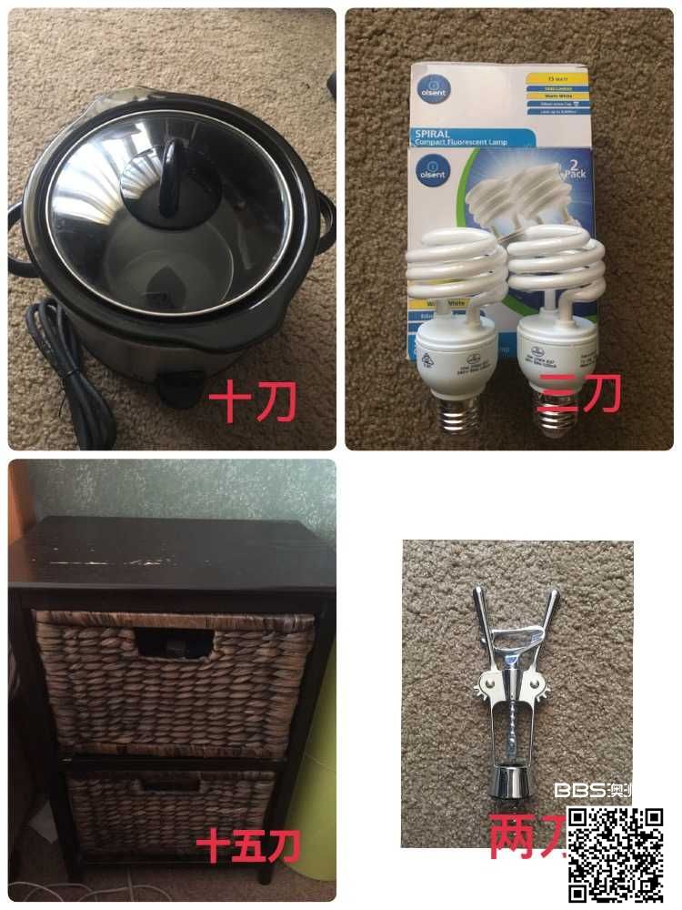 搬家闲置 出售电炖锅 电灯泡 开瓶器 床头柜 微信扫码 谢谢