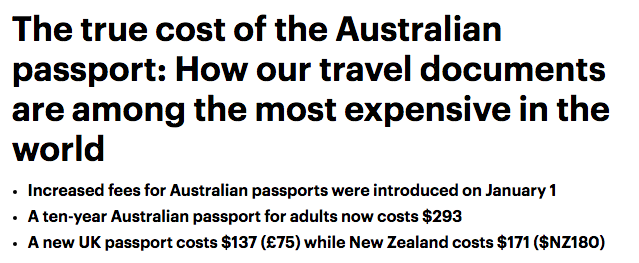 持有澳洲护照虽然真的很管用,可以自由访问181个国家,但是也是最贵的啊! 最新的报告显示,澳洲护照在价格上仍旧保持领先地位,是世界上最贵的护照之一! 而索马里、巴基斯坦和叙利亚也都垫底 ...