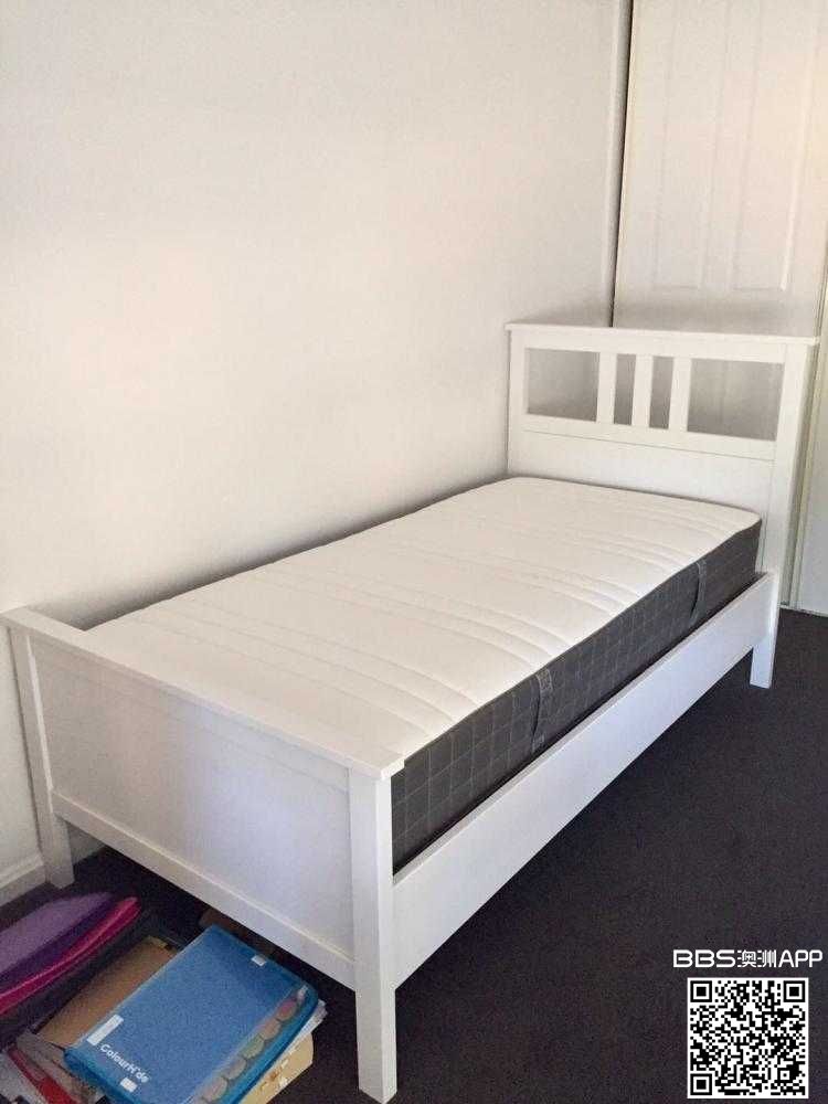 单人床八成新,床垫九成新,特别厚实,有弹性不软。一共$170。自取,近Mitcham。电话0411577301,可短信联系。