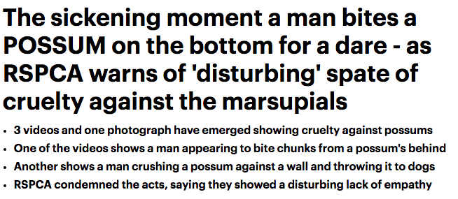 近日,RSPCA(皇家防止虐待动物协会)发布了一段令人震惊不已的视频,视频中一名男子竟然在用嘴撕咬活负鼠的臀部!然而这只是过去的一个月中在昆士兰发生的几起虐待澳洲原生有袋动物事件中的一起。 随后,RSPCA ...