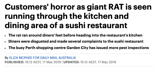 想象一下,你坐在商场的餐厅里享受着美食, 突然间!一只硕大的老鼠从你脚边经过…… 跑进了厨房,又跑了出来, 三进三出之后, 你是选择继续吃呢?还是继续吐呢? 一位不愿透露姓名的食客 ...