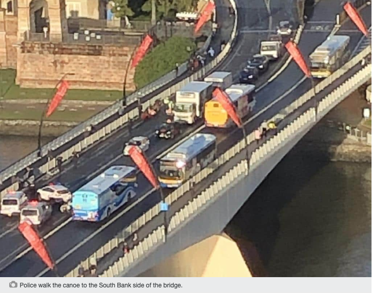 今早突发! 布里斯班维多利亚大桥上突然出现一直独木舟! 横在两条车道上,造成了高峰时段交通的严重拥堵! 还要来? 先不论这个抗议组织的目的是好是坏,单就做法来说,确实是影响了人们的出行和 ...