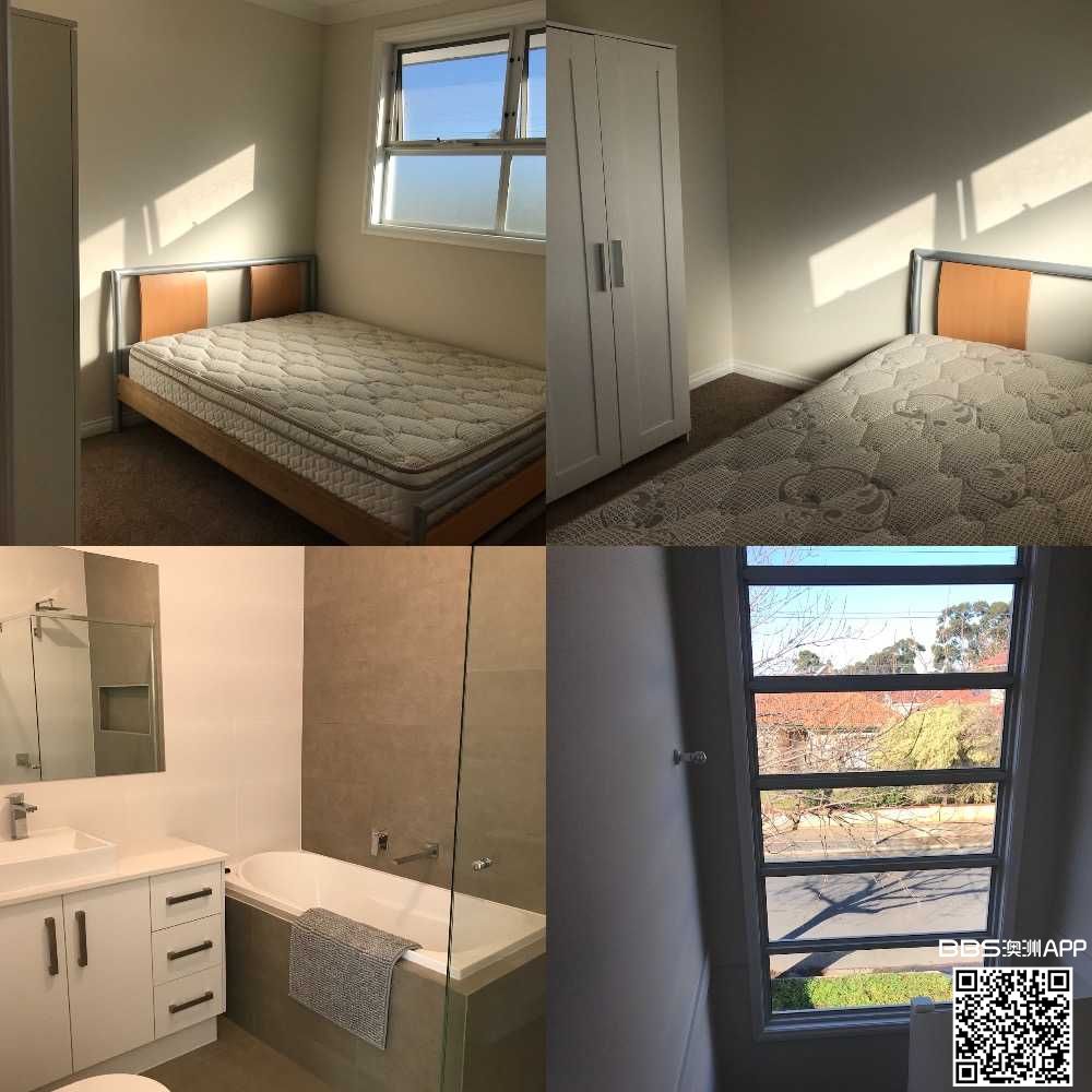 Plympton全新townhouse一间房出租,共三间房,现在只短租一间到9月5号。5分钟到kmart,coles,priceline各种超市和饭店,3分钟走到Anzac Highway有很多bus。有自己到卫浴,床上也是好床垫,需要干净的室友,200一周 ...