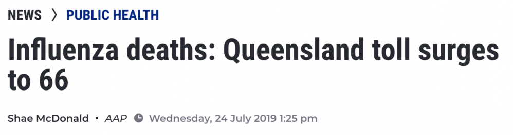 截至2019年上半年,昆士兰死亡人数上升至66人, 到目前为止,在2019年昆士兰州被诊断出的人中,有超过25,000人感染甲型流感。 其中约1680例需要住院治疗,其中165例需要重症监护治疗。 再次提醒大家,为确保 ...