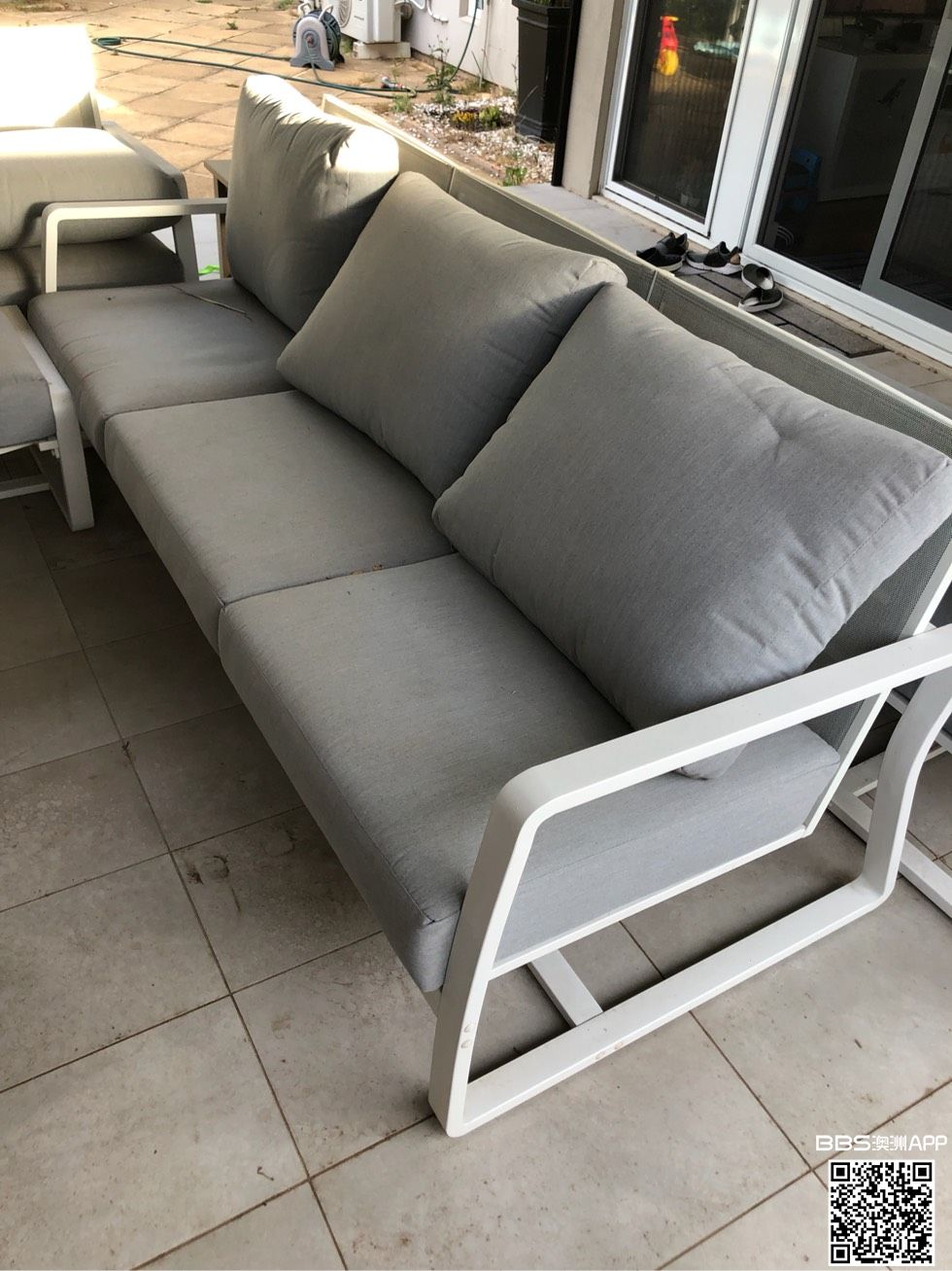 全部户外家具 harvey norman 一年前购入 实木桌子可以单买 $200 剩下的沙发小桌一套卖$1200 一个三座的