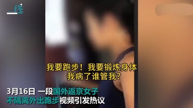 国外返京女子不按规定隔离外出跑步 面对社区防疫人员的劝说还大喊“救命骚扰” 据了解,该女子为澳大利亚籍华人,返京后不按规定居家隔离外出跑步且不戴口罩。面对社区防疫人员劝说,该女子不但不听劝告,还大喊“ ...