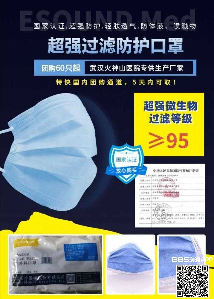 正规医用口罩团购 厂家直销 拥有国家认证资质 60个起购 量大优惠 特快团购通道3-5天到货 支持银行卡、微信和支付宝转账 单价澳币1.8 刀人民币按当天汇率结算 阿德市区自提 欢迎咨询 加微信备注:口罩