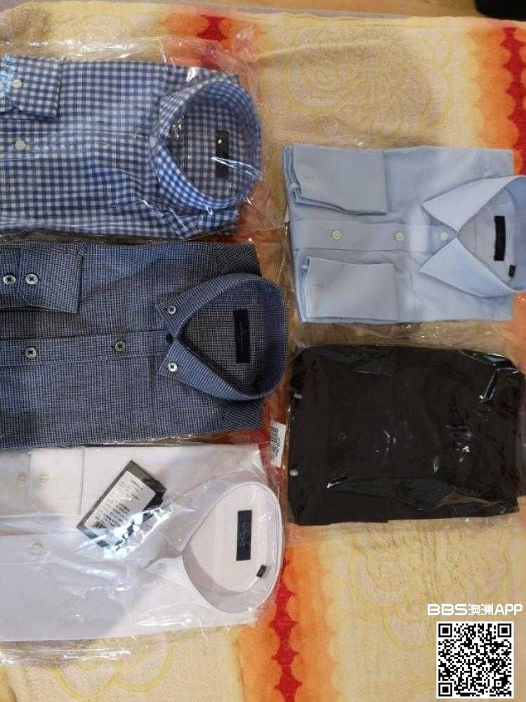全新男士衬衫40码适合170-175身高,原价$110.00一件,现价$50.00。请市区自取,0466144678. 注:上面二件是法式袖扣衬衫。