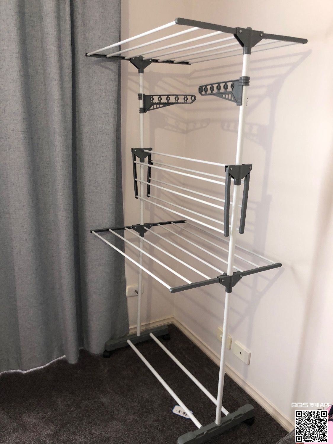 多功能大衣架,可以挂很多衣服裤子,也可选择部分收起,方便使用,99成新,转让价15刀,已售出